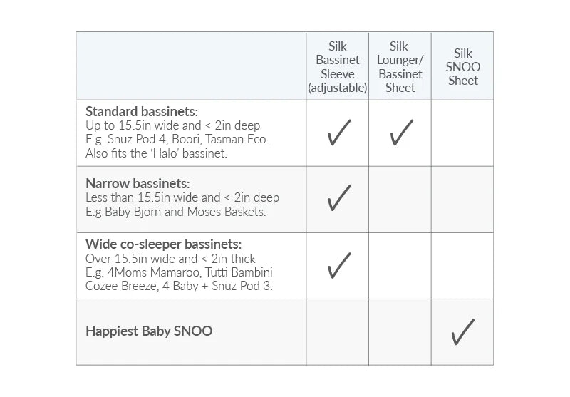 We have 3 options for Bassinets: Silk Bassinet Sleeve, Silk Lounger/Bassinet Sheet and the Silk Oval Bassinet Sheet.